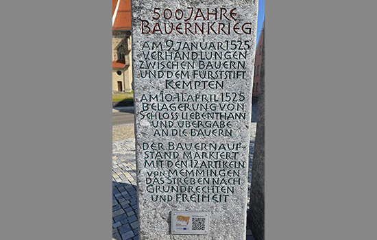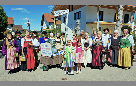 Der Arbeitskreis Heimatkunde Obergünzburg hatte zur feierlichen Enthüllung einer Gedenkstele auf dem Obergünzburger Marktplatz eingeladen. In Erinnerung an 500 Jahre Bauernkrieg war auch der Fürstabt Sebastian von Breitenstein (gespielt von Helmut Haggenmiller) eingeladen. Dieser kam jedoch nicht alleine sondern mit drei bewaffneten Landsknechten und forderte von „ den Bauern, dem anwesenden Gesindel und dem undankbaren Eigenvolk die Ehrerbietung und Huldigung seiner Person“.